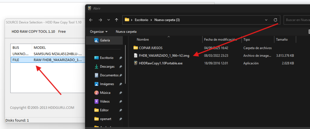 - En file selecciona el archivo FHDB_YAKARIZADO_1_966+V2.img