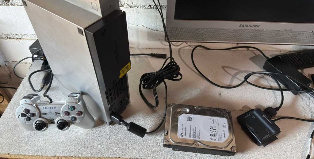 Una vez copiados los juegos al disco duro, instálalo en el adaptador SATA de tu PS2 FAT. La consola podrá ejecutar tus copias de seguridad de forma más rápida y segura, sin necesidad de usar constantemente los discos ópticos.